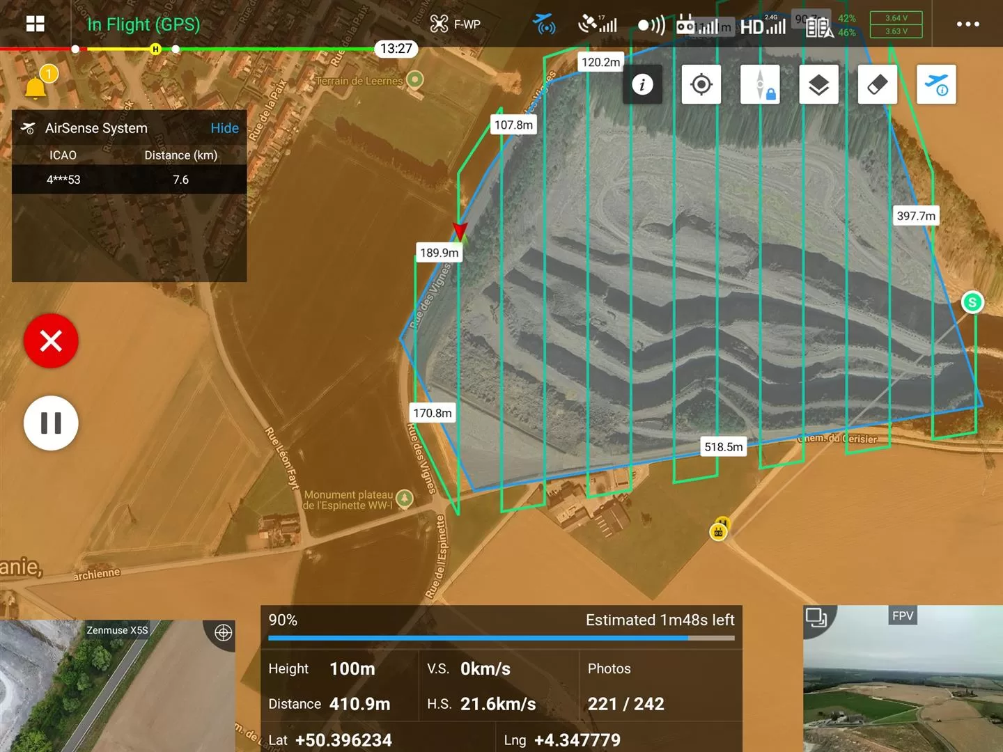 Mission flight planned and currently in progress