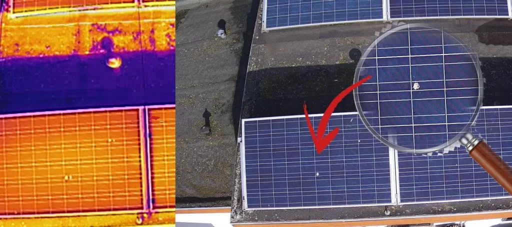 - Thermal (IR) Images: These record heat differences. A defective solar cell, a broken bypass diode, or a poor connection emits heat and appears as a bright âhotspotâ in the image. This is the primary source of defect detection.