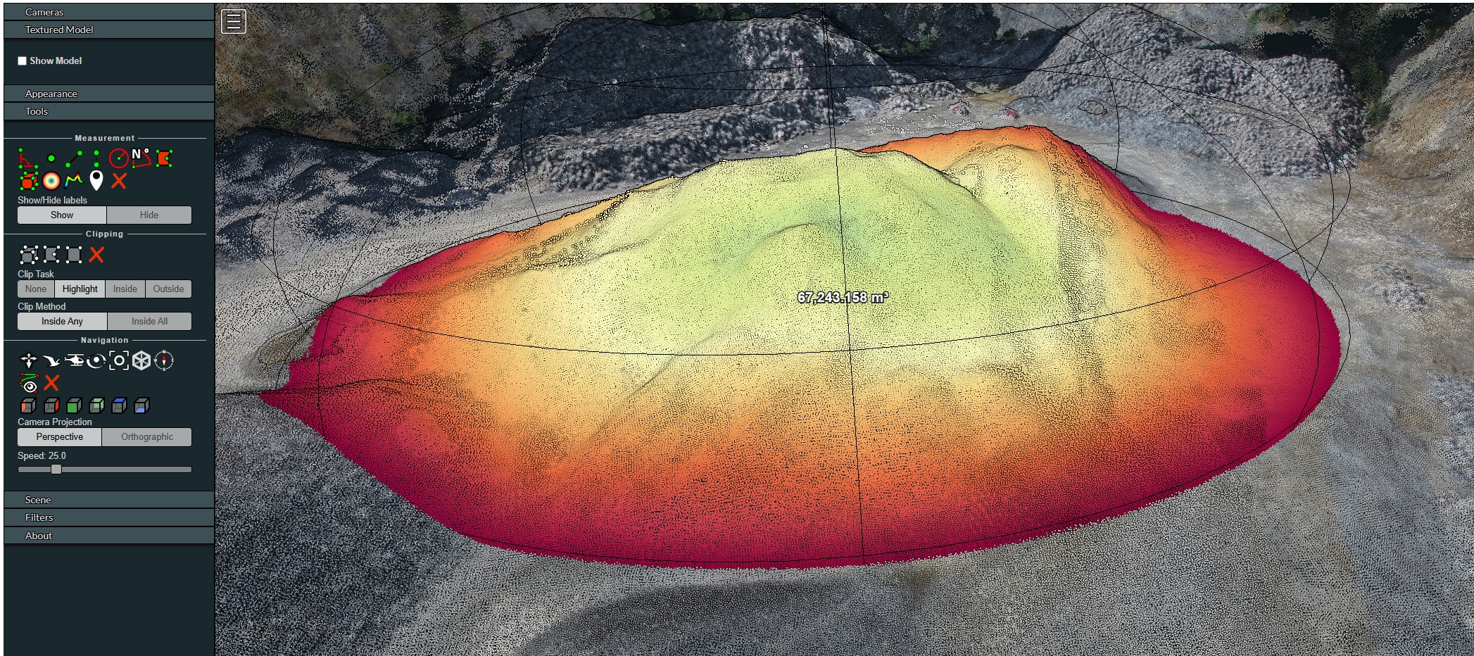 Ervaar zelf hoe u met enkele klikken volumes berekent in een model van miljoenen meetpunten. Vraag een demo-link aan